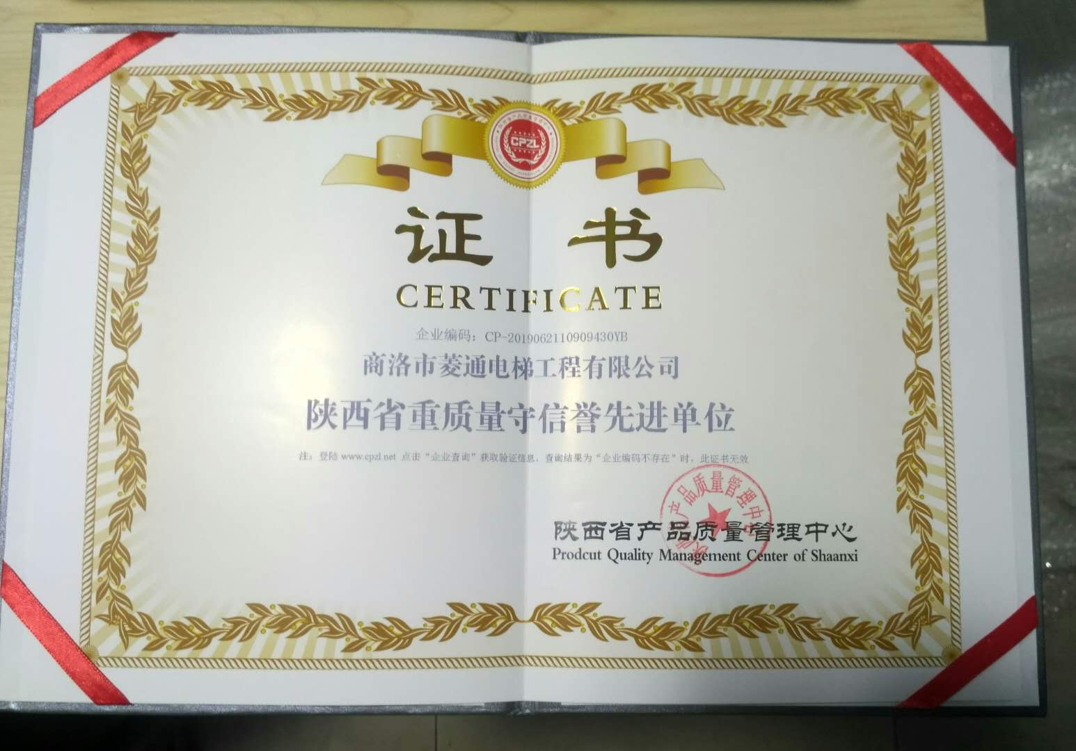 商洛菱通電梯工程有限公司,2019年很榮幸被陜西省產(chǎn)品質(zhì)量管理中心評為:陜西省AAA級信譽單位和陜西省重質(zhì)量守信譽先進單位;并頒發(fā)獎牌及榮譽證書。這個榮譽不但得益于各單位的支持與默契合作,更得益于我公司優(yōu)良的團隊氛圍和集體上下一致積極認真的工作態(tài)度。更得益于領(lǐng)導(dǎo)重承諾守信譽:提倡安全第一,質(zhì)量第一,信譽第一的原則。能被評為3A級信譽單位和信譽先進單位,既是對公司工作的肯定,也是對今后工作做得更好的一種鼓勵,我公司定會盡職盡責(zé)做得更好。